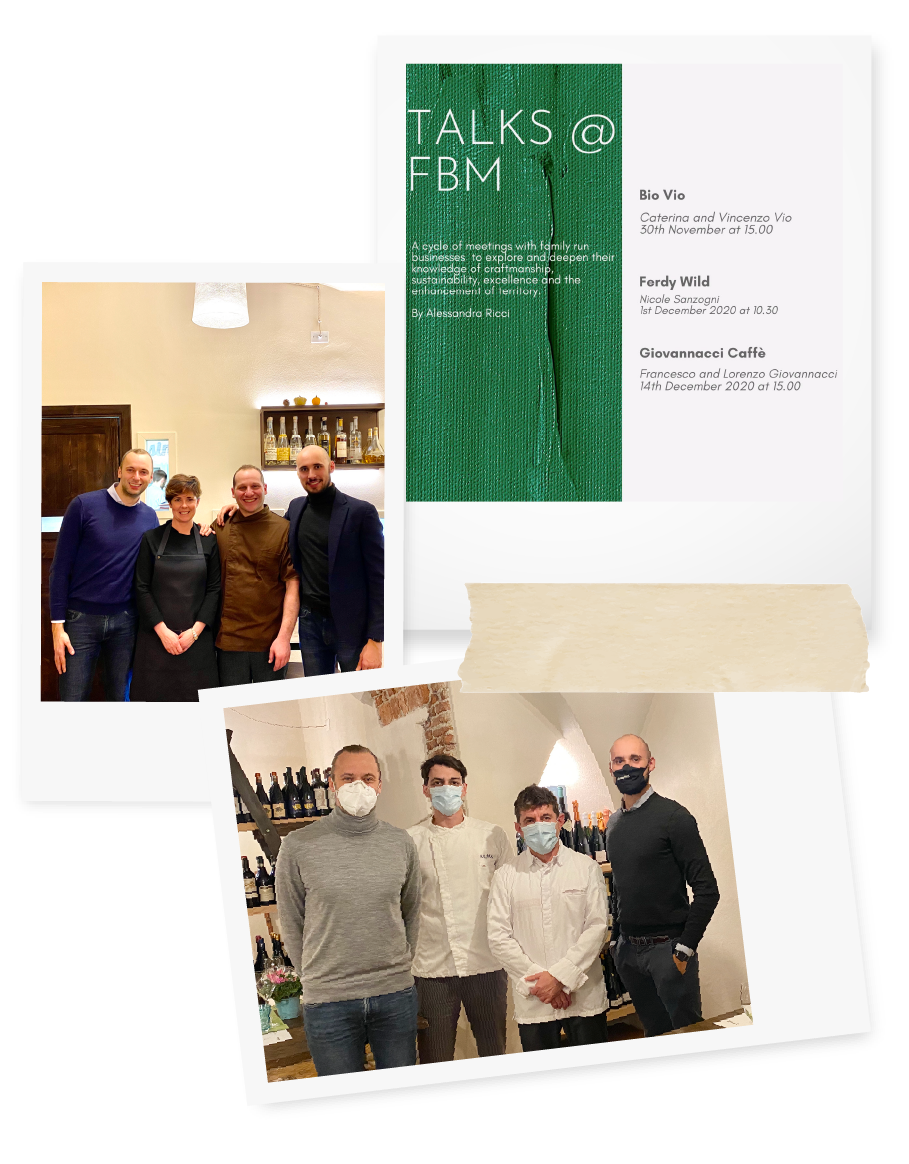 Organisation von Abendessen in Zusammenarbeit mit Sterneköchen sowie Einladung zu Abendessen mit Sternenköchen, in deren Gerichten unser Produkt verarbeitet ist, der Kaffee. Einladung von der Universität von Pollenza, im Rahmen einer Vortragsreihe über Familienunternehmen, Nachhaltigkeit, Handwerk, Spitzenqualität und uns zu sprechen. An der Fakultät für Geschichte im Masterstudiengang "Geschichte des Territoriums und seiner Ressourcen" der Universität Genua sprechen wir über unsere Erfahrung in Hinblick auf Veränderungen und Investitionen in neue Generationen